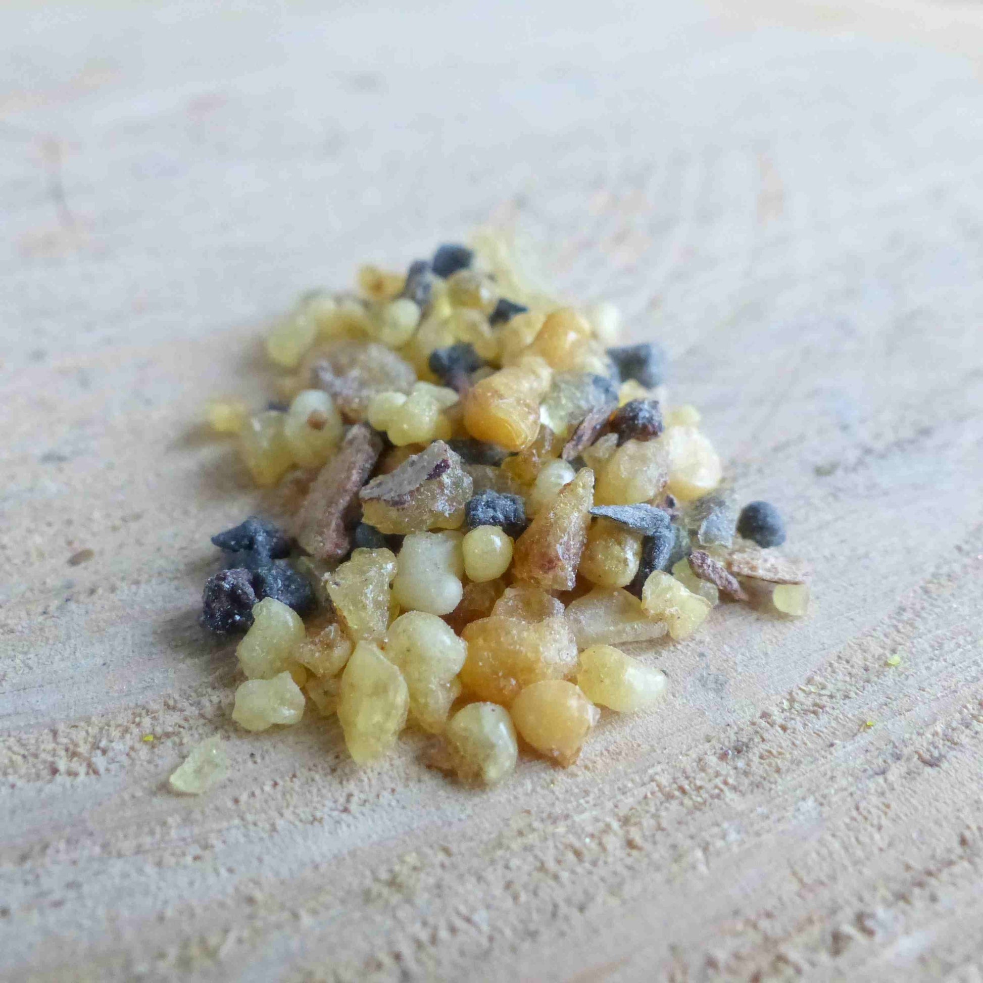 Les encens en grains sont constitués de morceaux de résine séchée de plantes et d’arbres. Il en existe une multitude, utilisées pour la plupart depuis l’Antiquité, dans un temps où les parfums revêtaient une profonde importance spirituelle. Ces sèves dégagent une senteur apaisante, chacune est unique, faisant appel à tout un réseau d’associations et d’émotions dans notre cerveau, nous rappelant à l’un de notre plus ancien sens : l’odorat.