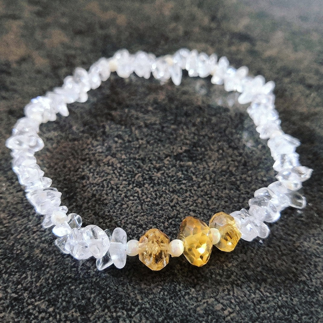 Bracelet de Citrine naturelle et Cristal de roche ~ Intellect