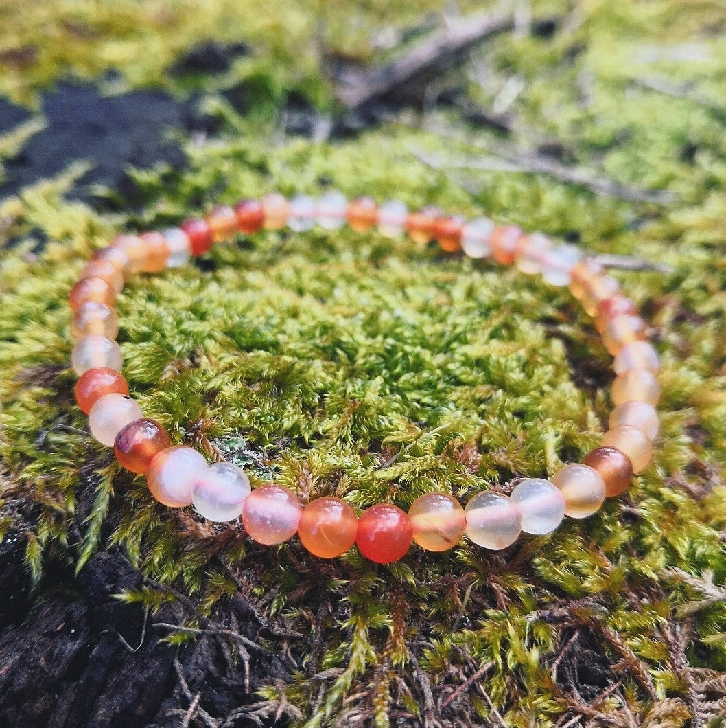 La cornaline est une variété de calcédoine orangée, dû à la présence d'hématite. La cornaline améliore la vitalité et le dynamisme. Elle donne du courage et permet le dépassement de soi.