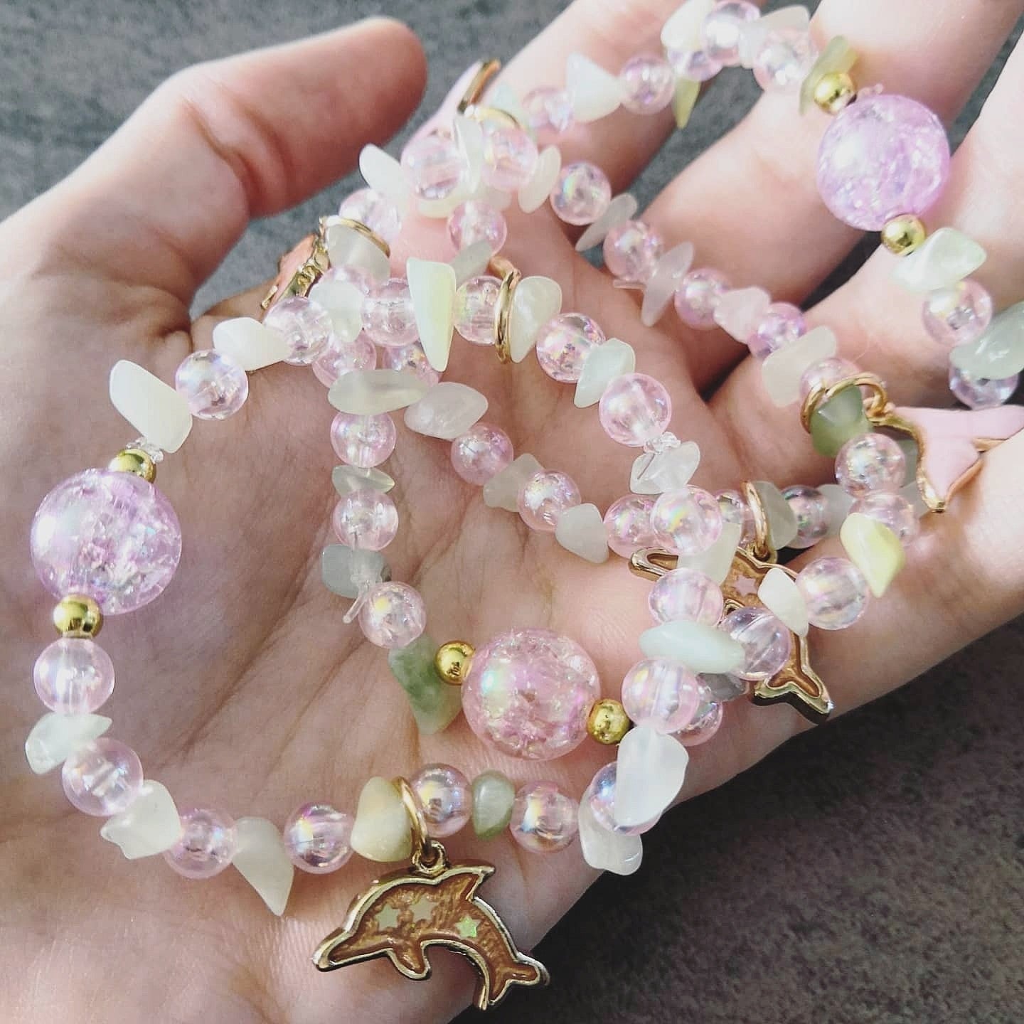 Bracelet de Serpentine "New Jade" - Dauphin rose