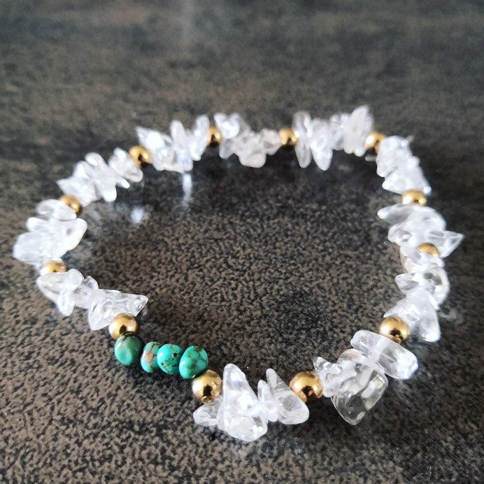La Turquoise facilite la communication, l’expression créative et les discours. Elle protège les voyages et tous les déplacements, même s’ils sont très simples. Elle guérit le mal des transports. Elle apporte spiritualité, courage et équilibre émotionnel. Elle renforce l’amitié, l’amour et les sentiments. Elle enracine les expériences ultimes de méditation. Elle favorise le contact spirituel, les facultés psychiques, la sagesse. Elle confère une clarté afin de discerner sa propre voie. Elle aide à percevoir la beauté autour de nous. Elle équilibre en nous le féminin et le masculin.
