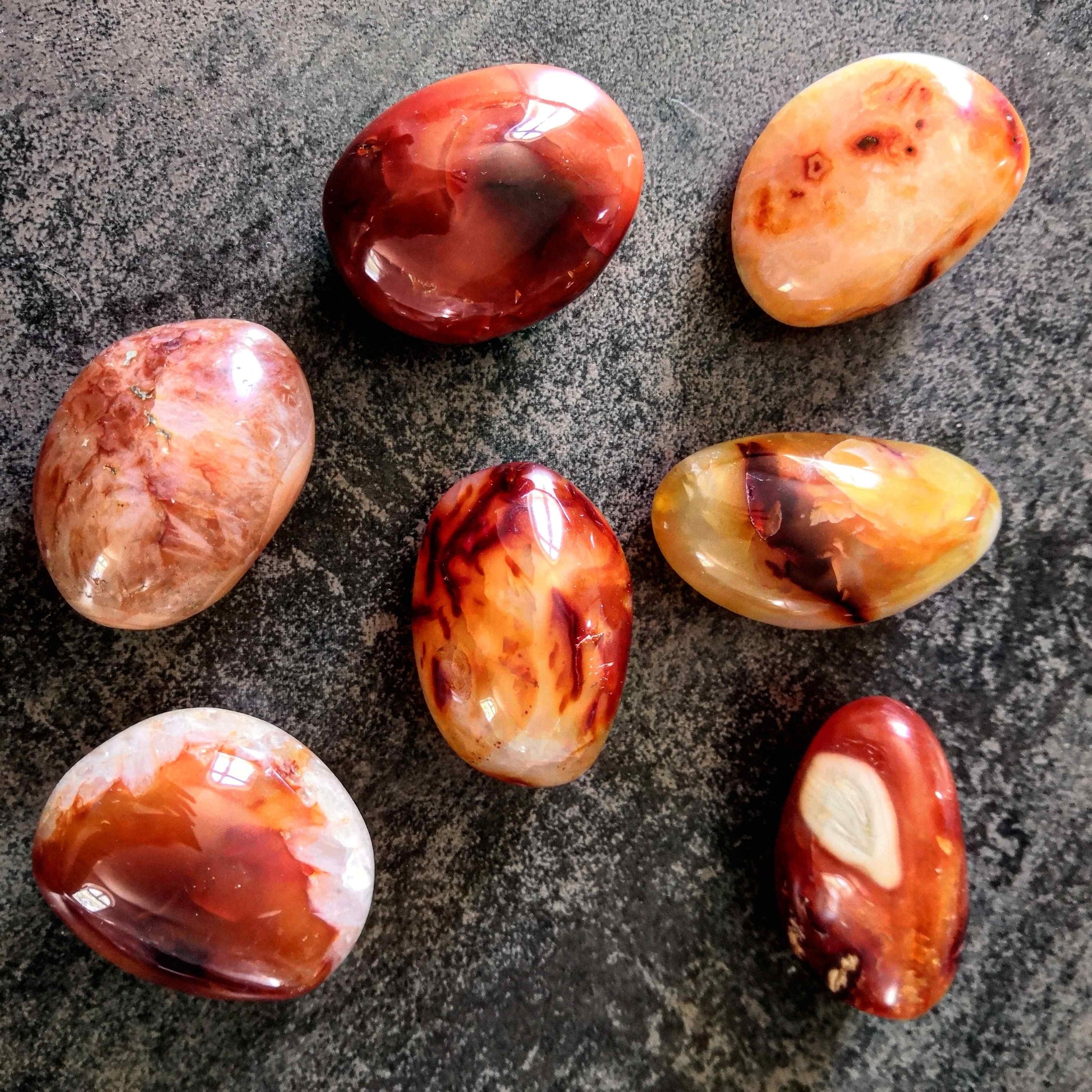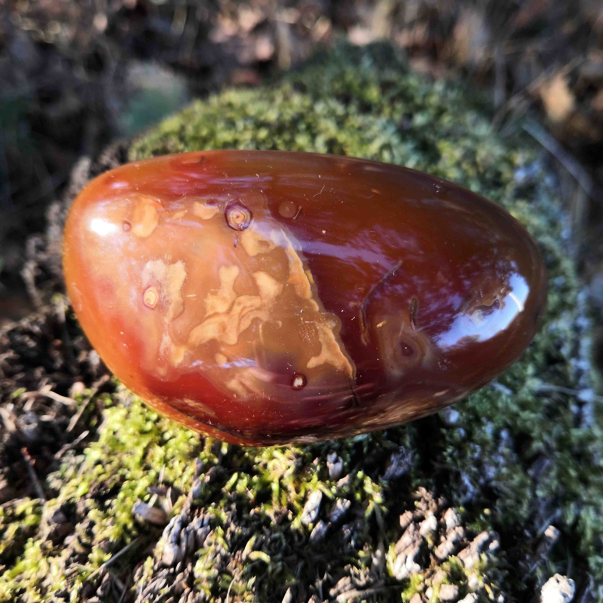 La cornaline est une variété de calcédoine orangée, dû à la présence d'hématite. La cornaline rend dynamique, concentré sur ses objectifs et plus ouvert aux nouvelles expériences qui nourrissent l'âme. Elle donne du courage, de la vitalité, permet le dépassement de soi. Elle reconnecte à la sphère intime, au féminin sacré.