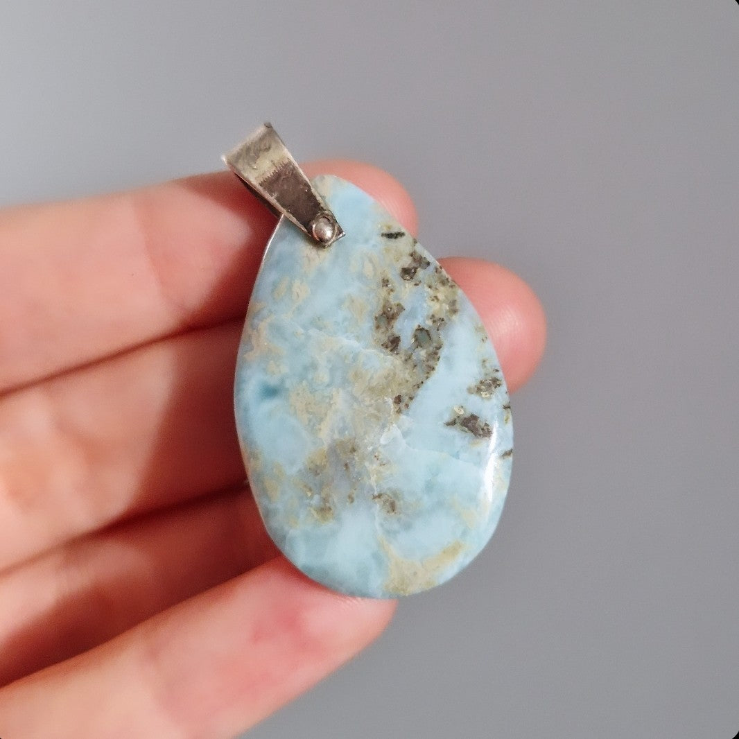 Le Larimar est une pierre découverte récemment qui ne se trouve qu'en République Dominicaine. Elle est photosensible, il ne faut donc pas la placer au soleil au risque qu'elle perde sa couleur.