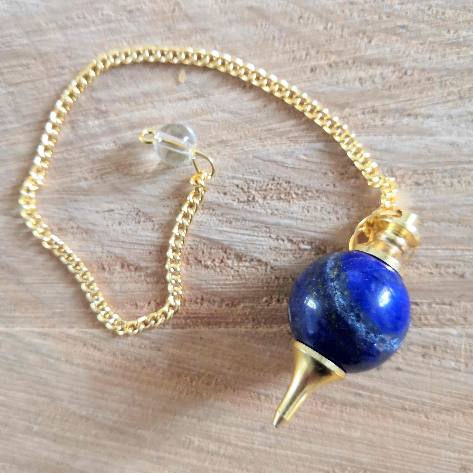 Ce pendule en lapis lazuli est approprié aux travaux de divination, spiritisme, canalisations. Mais il peut aussi être utilisé pour la détection et la mesure de taux vibratoire.