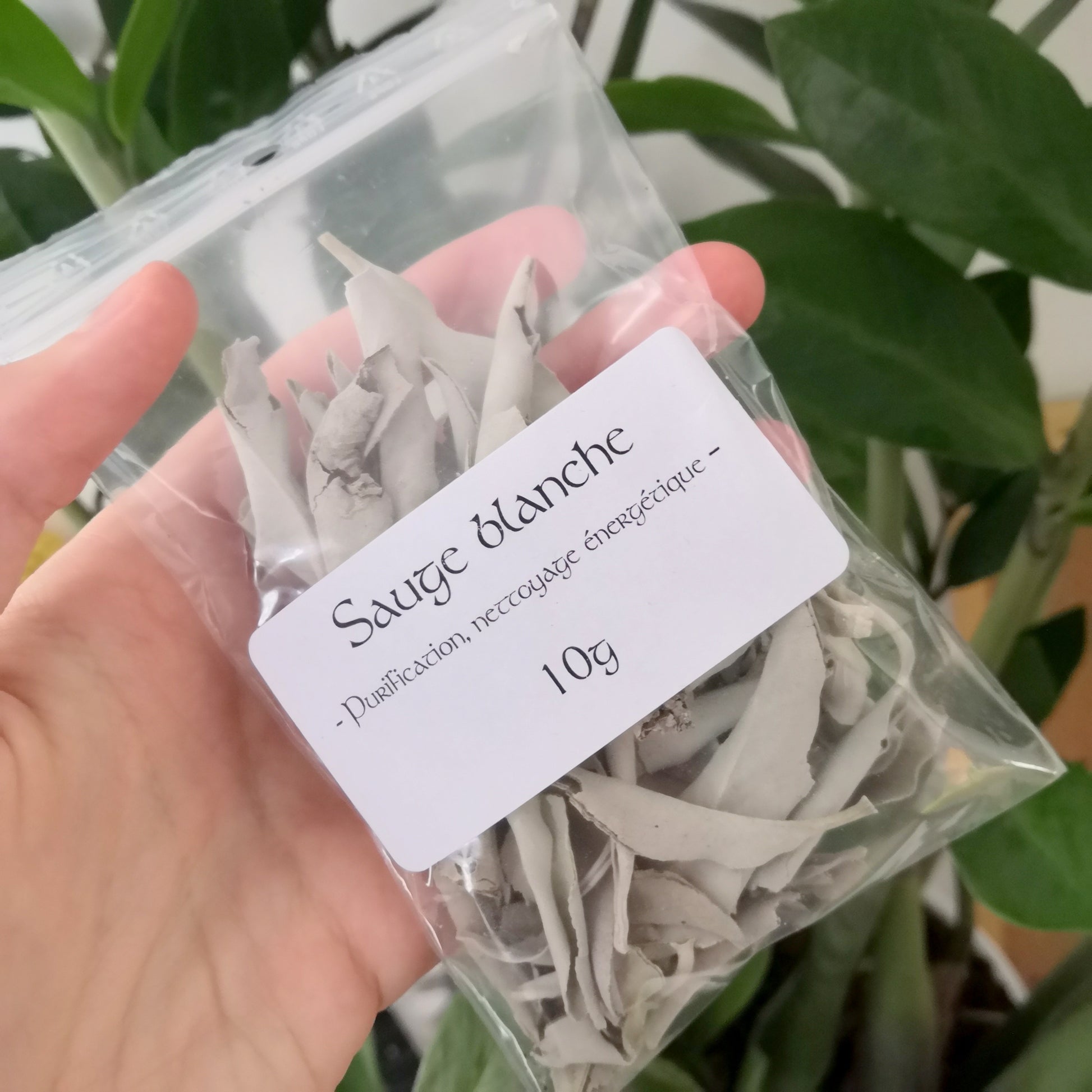 La sauge blanche est un puissant purificateur, très répandu et utilisé pour nettoyer les lieux de vie chargés, pour purifier les cristaux et nos corps subtils. Elle aide aussi à constituer un espace sacré.