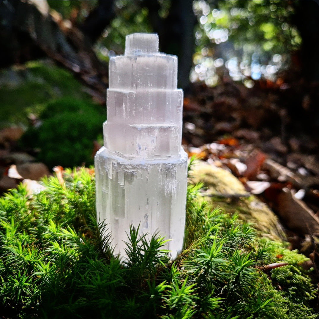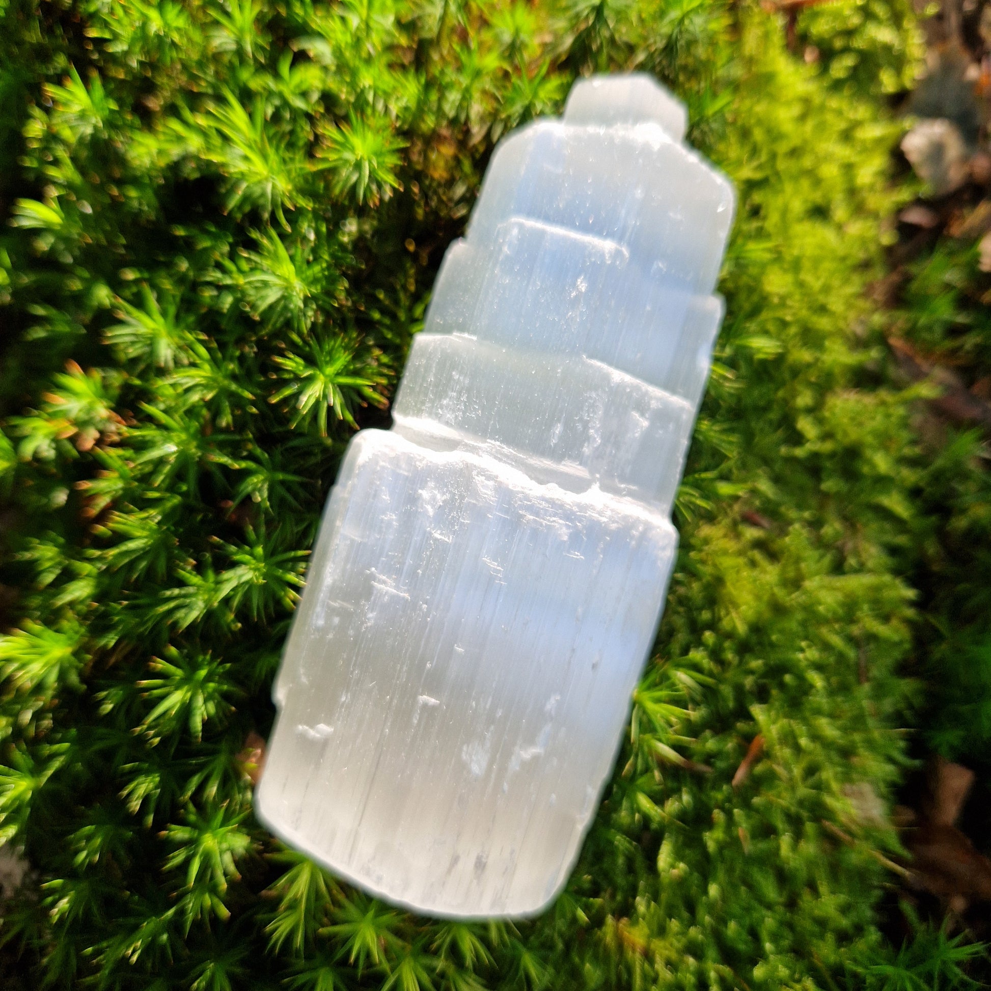 La sélénite est un minéral associé à la médiumnité, les pouvoirs lunaires, les perceptions subtiles et l'intuition. Elle permet d'être plus sensible aux énergies subtiles, développer ses pouvoirs psychiques. C'est aussi une pierre très douce qui calme les angoisses.